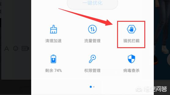 2、在手机管家的首页界面下,找到并点击“骚扰拦截”功能。