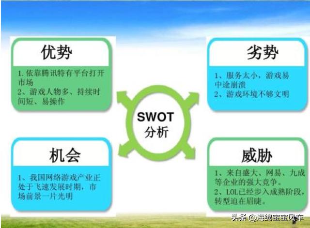 市场营销环境分析内容和方法有哪些?市场营销环境分析常用的方法为SWOT法,它是(优势)、(劣势)、(机会)、(威胁)的意思。具体内容如下: