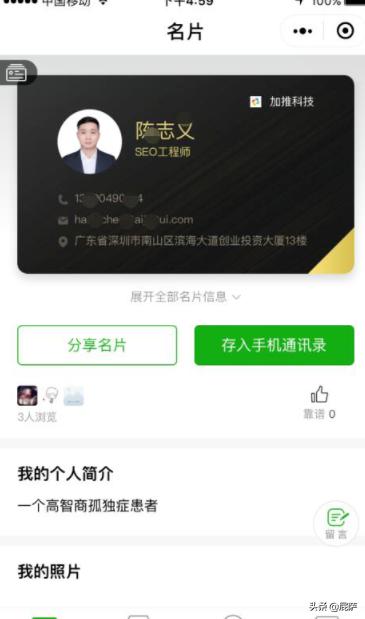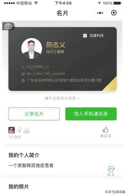 6:最后一键生成电子名片,直接转发给好友、客户,让这个高大上的名片敲开你的业务之门。