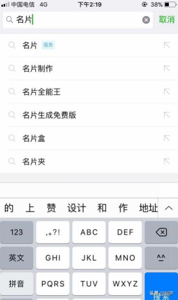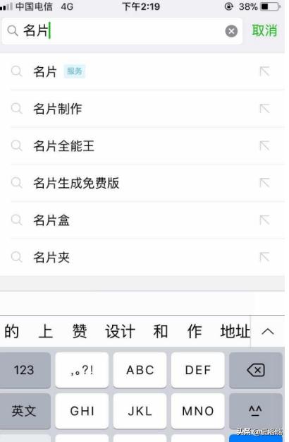 2:在右上角的小放大镜处——搜索框输入“名片”。