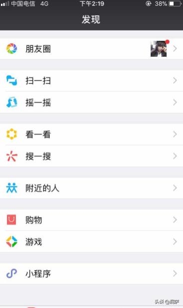 1:手机登录个人微信页面,然后依次查找到“发现”——点击“小程序”。